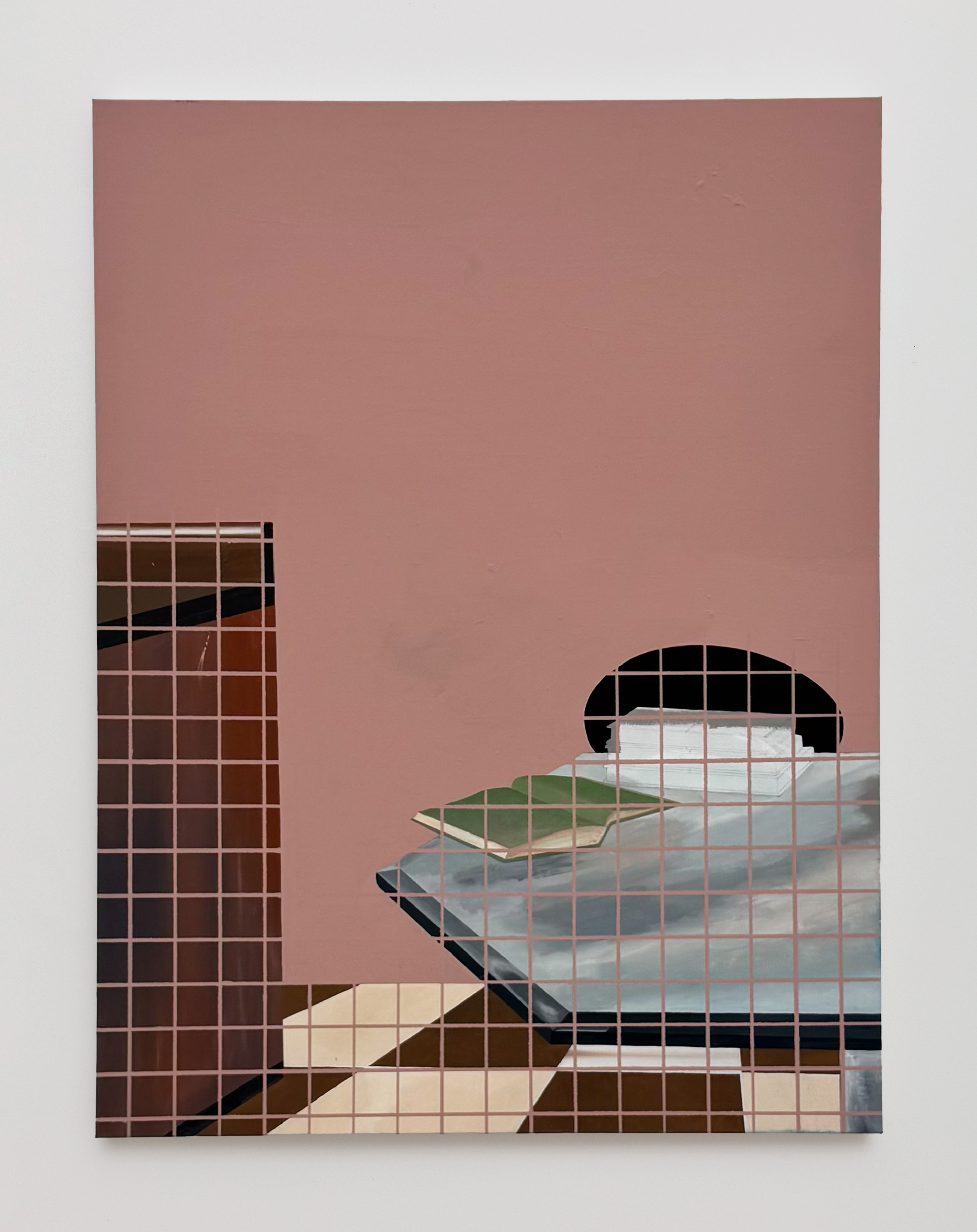 A cluster of interior paintings envelopes the gallery in a soft pink haze. Interiors are significant for Broyard, who views them as sights for deep visual introspection. So many memories and emotions are associated with internal spaces. Consider the feeling of watching a family home sell, or an old dorm room be renovated into a social venue.