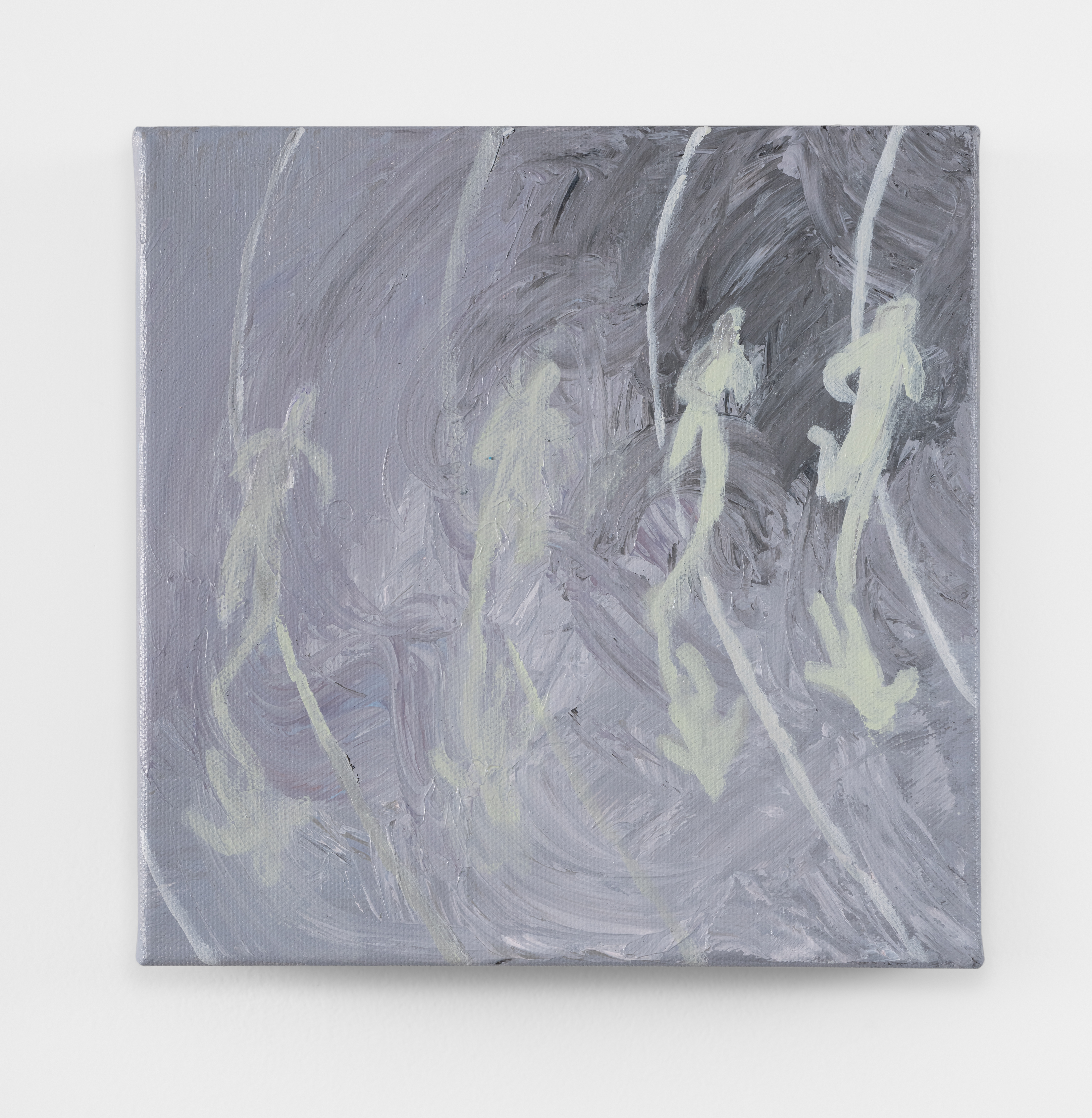 The four paintings presented in Running convey a multitude of conceptual threads that Thompson pulls at—fragility and strength, presence and absence, the body and its mechanisms, resilience and fragility, and the suspension of time, among others.